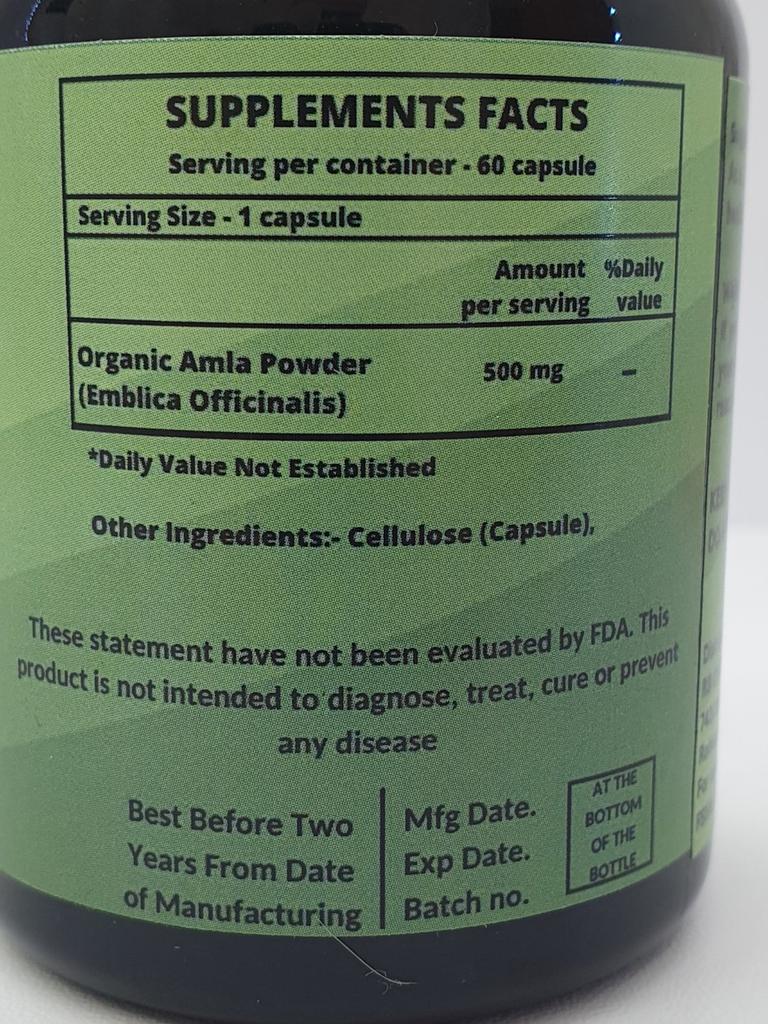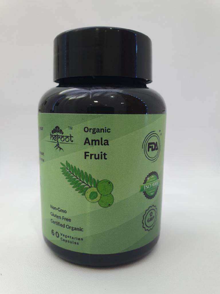 Heroot Organic Amla Capsules 1000mg | Indian Gooseberry Powder | Natural Antioxidants & Hair Nourishment | 60 Veg Capsules