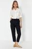 Black Elastic Waist Rib Detailed Straight Cut Woven Trousers Tctss21pl0570