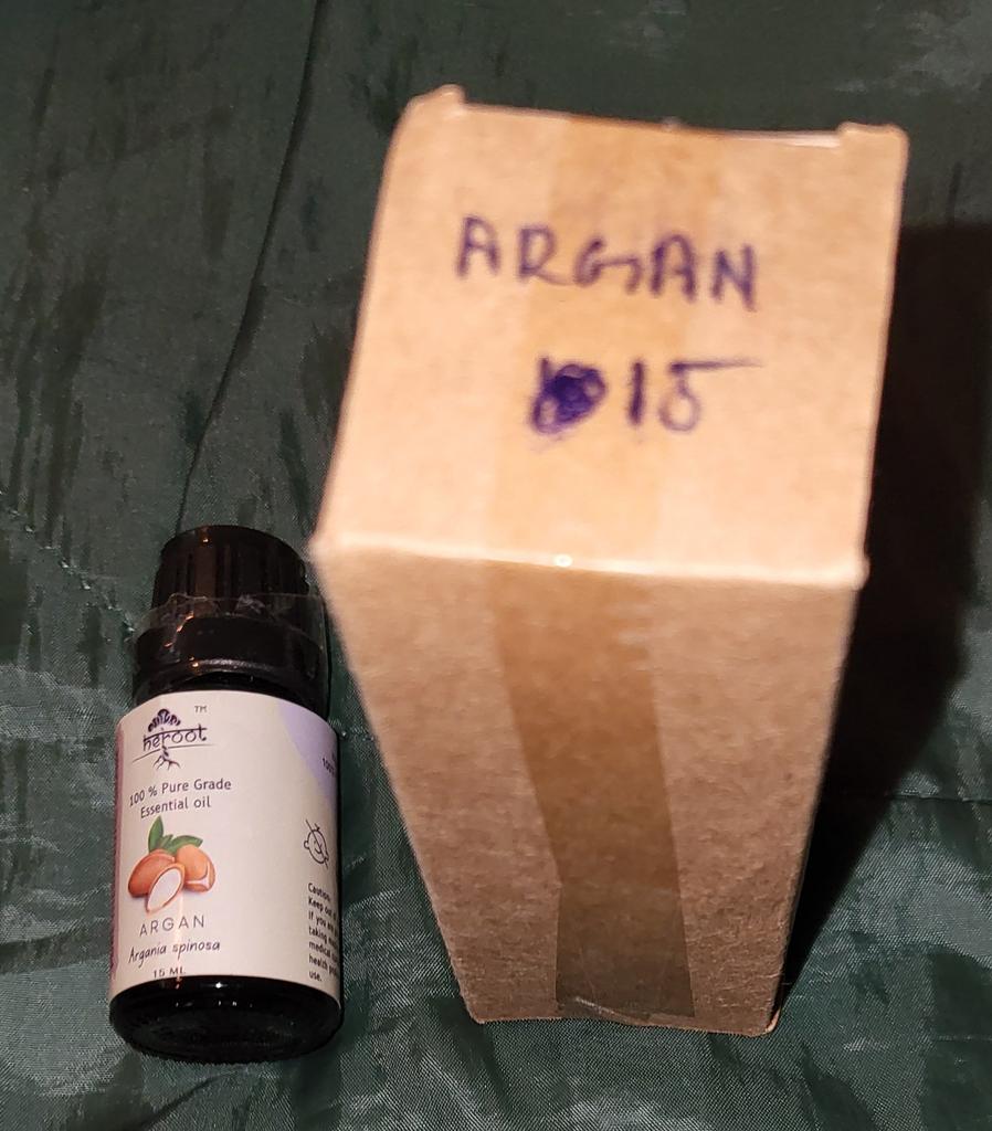 Je extrahován z ořechů arganovníku a nazývá se tekuté zlato nebo červené zlato, protože má při extrakci barvu zlata.; aroma arganového oleje je sladké a oříškové. Olej má nespočet výhod pro péči o pleť a vlasy, protože je přirozeně bohatý na esenciální mastné kyseliny, antioxidanty a vitamín E.