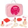 Dívky předstírají, že si hrají, dítě, make-up, krásný make-up, kadeřnická simulace, dřevěná hračka pro dívky, děti, kosmetika, oblékání