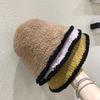 Fisherman's Hat Women's Autumn Winter Korean Edition Color blocked Curly Edge Plush Pot Hat Japanese Versatile Warm Thick Bucket Hat