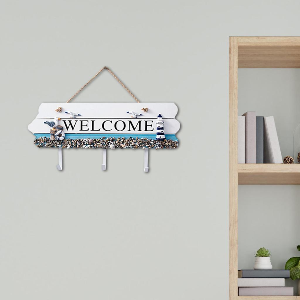 Painted Welcome Wall Mount Hooks Decorative Wooden Coat Rack Easy Installation Versatile Hanging