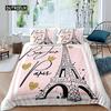 2/3KS Soft Paris Eiffelova věž Sada povlaků na přikrývku Love Heart 3D Print King Queen Sada povlečení na přikrývku z mikrovlákna Domácí textil