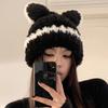Dámská roztomilá čepice s medvědími oušky Podzim Zima Pruhovaná Teplá Plyšová Pletená Čepice