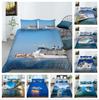3D Ship Duvet Cover Set King Queen Size Large Freighter Container Print Bedding Set Blue Sea 2/3pcs Polyester Comforter Cover