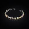 Milgrain Edge Dainty Round 37 Gem Setting Iridescent White Created Opal Tennis Bracelet Rhodium Plated Sterling Silver October Birthday Stones Women's