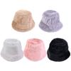 Winter solid color imitation rabbit hair bucket hat women's plate versatile bucket hat thickened plush warm plush basin hat