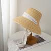 Women's Wide Brim Straw Hat with Ribbon for Beach Vacation and Sun Protection