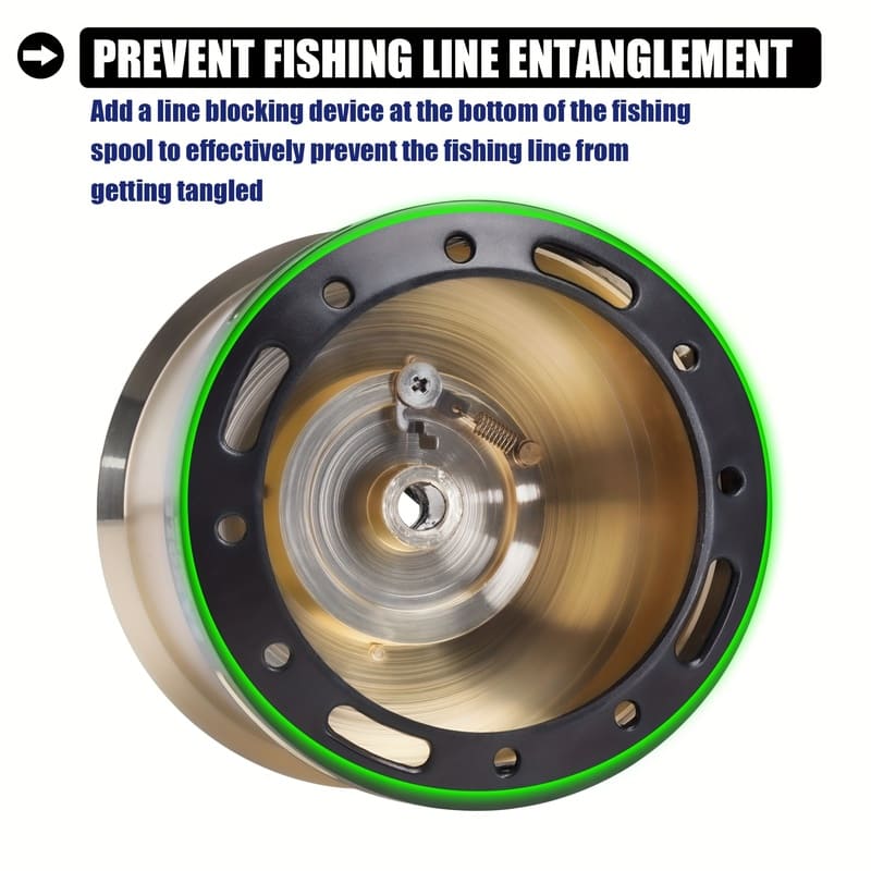 1. Aby se rybářský vlasec nezamotal, je na spodní stranu rybářského navijáku přidáno zařízení pro odpor vlasce, které účinně zabraňuje zamotání rybářského vlasce.