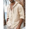Pánská stylová košile s kapucí na knoflíky - Lehká směs bavlny a lnu, Ideální pro volnočasové a outdoorové aktivity, Prodyšná a pohodlná