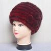 Women's Knitted Rabbit Fur Winter Hat Rex Fur Striped Pineapple Beanie, Soft Fluffy Elastic Cap, Warm Thick Fuzzy Trapper
