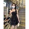 Lotus leaf edge suspender dress female summer drag sister style small black dress temperament elegant girl