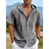 Pánská košile s kapucí Bavlna Len Prodyšná Lehká Letní Krátký rukáv Jednobarevná Stylové košile Pánské Ležérní Top