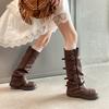 Retro western cowboy boots women's 2025 autumn and winter new Internet celebrity belt buckle trouser tube side zipper black knight boots