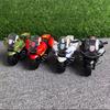 This 1:18 scale diecast motorcycle model features a durable alloy construction in white and red, delivering detailed craftsmanship for collectors and enthusiasts. It incorporates inertial control for smooth movement, making it ideal for display or active play. Measuring approximately 12 cm long, it resists wear with easy-to-maintain surfaces. Suitable for display, gift-giving, or imaginative use, it can be wiped clean with a damp cloth to preserve its finish.