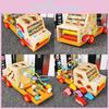 This multi-functional wooden learning cart measures 33.6*14.6*9cm, featuring durable, eco-friendly wood construction. It supports shape recognition and early math skills through colorful beads and interactive components. Ideal for preschool education and cognitive development, it cleans easily with a damp cloth.