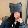 Korean Cute Cat Ear Wool Hat for Women In Autumn and Winter New Windproof Warm Pullover Hat Big Head Circumference Pile Hat Trendy