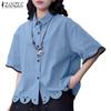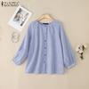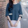 ZANZEA Women Turn Down Collar Loose Casual 3/4 Sleeve Plain Blouse