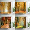 Forest Landscape Shower Curtain Sunshine Waterfall Green Bamboo Mist Jungle Autumn Scenery Bathroom Curtains Bathtub Decor Hooks