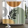 Mid Century Abstract Boho Shower Curtain Green Leaf Plant Modern Arch Sun Minimalist Nordic Waterproof Bathroom Bath Curtain