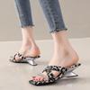 Fashion Leopard Print Wedge Heel Shoes for Women 2025 Luxury Sandals Wholesale Elegant and Fashionable Slides Korea Style Woman Slippers