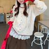 Lazy wind color buckle design cartoon pattern knitted cardigan sweater women's autumn sweet soft waxy loose coat