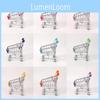 This miniature metal shopping cart offers a realistic and detailed storage solution for children. Crafted from durable metal, it measures 13*11.5*7.8cm, 14.5*13.5*9.5cm medium size, providing a sturdy and lightweight design. Its vibrant colors and intricate ironwork enhance sensory engagement and encourage interactive play. Ideal for fostering early organization skills and parent-child communication during pretend shopping or role-playing activities. Clean with a damp cloth to maintain its appearance.
