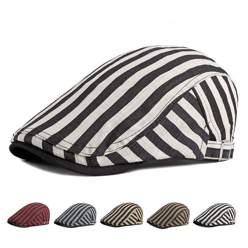Newsboy Caps for Men Beret Spring Summer Cap Women's Breathable Striped Forward Cap Gatsby Painters Hats Ivy Hat Hombre Boina