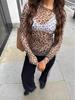 Leopard Print Mesh See-through Top Long Sleeves Leopard Print Mesh See-through Long Sleeves T-shirt for Women