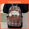Capacity Large Backpack With Grid And Cartoon Dog Cat Print Design Daily For