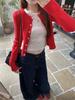 Women's Korean-Style Red Cardigan Sweater Coat - Loose Slimming Knit Top for Spring & Autumn 2025