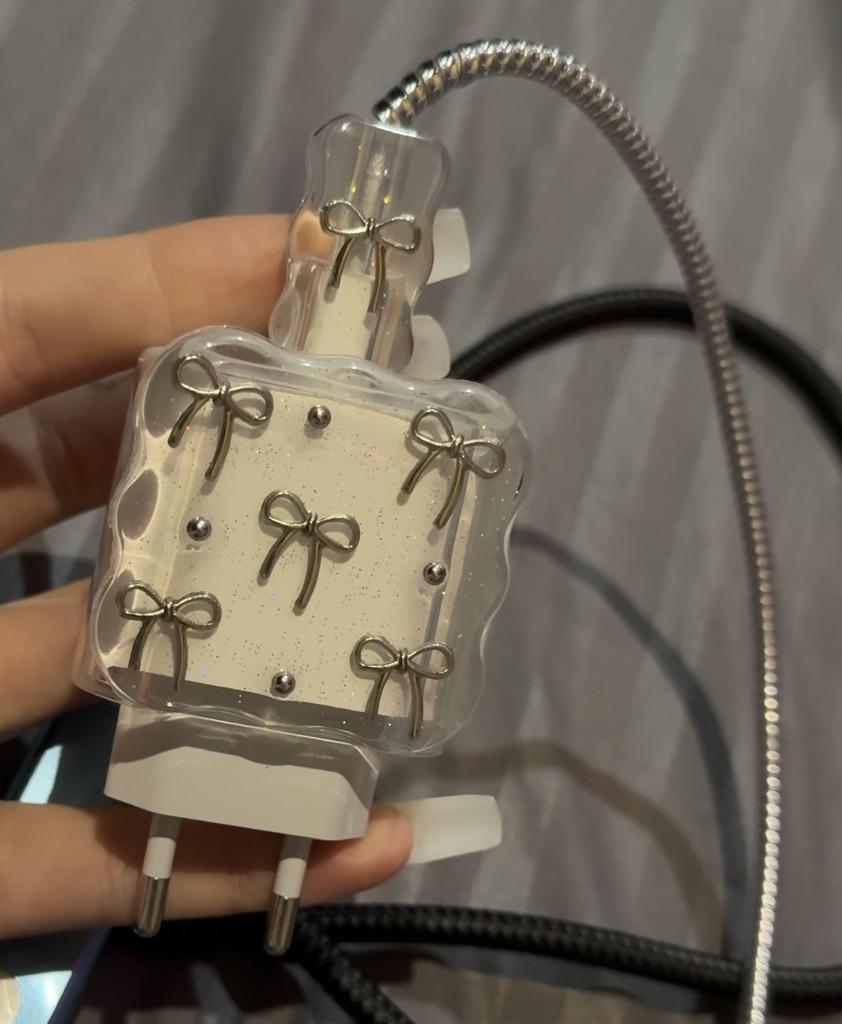 Protective Case for iPhone 20W USB-C Adapter Charger Cable 3D Cartoon Bowknot Power Adapter Charger Protective Cover Charging Cord Protector