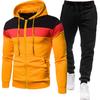 This stylish two-piece set features a spliced hooded jacket and long pants, perfect for casual outings during the spring and autumn seasons. Crafted from a soft and comfortable cotton blend, it ensures both warmth and breathability. The jacket's contemporary design and practical hood provide a modern edge, while the long pants offer versatility and ease of movement. Whether for a relaxed day out or leisure activities, this tracksuit combines comfort with effortless style.
