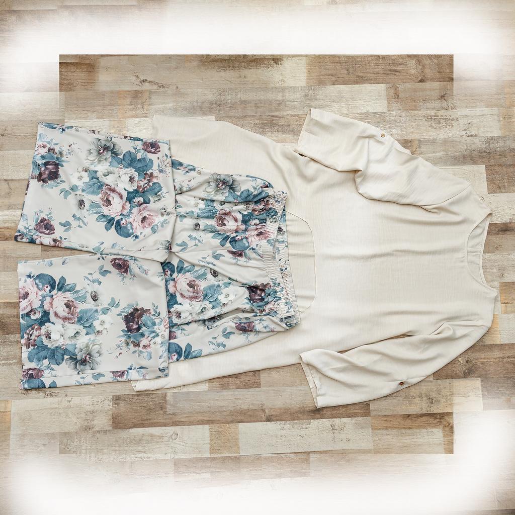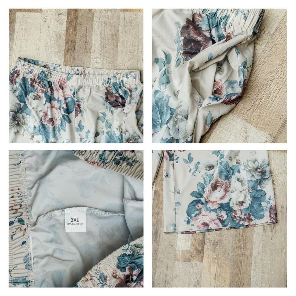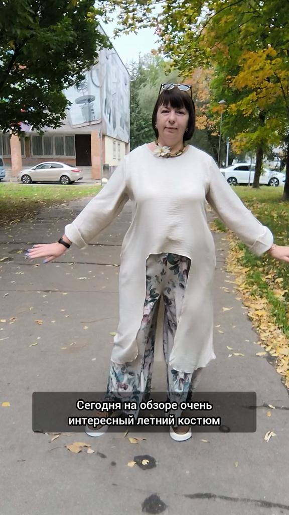 Conjunto de mujer casual de algodón y lino con top irregular estampado y pantalones anchos con cinturón y bolsillo