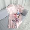 Korean Style Ice Silk Nightdress Women's Summer Thin Lace up Pajamas Homewear Skirt Mid-Length Pajamas
