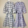 Evnstyle "Holy Island Blue Window" Spring New Mid-Length Nine-Quarter Sleeve Loose Blue Plaid Dress Women