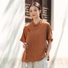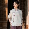 Johnature Women Chinese Style Shirts Solid Color Stand Tops Vintage Blend Summer Blouses Seven Sleeve Button Shirts
