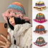 Handmade Knit Striped Bucket Hat for Woman Weaving Striped Plush Floppy Bucket Hat Adult Teens Winter Fisherman Cap