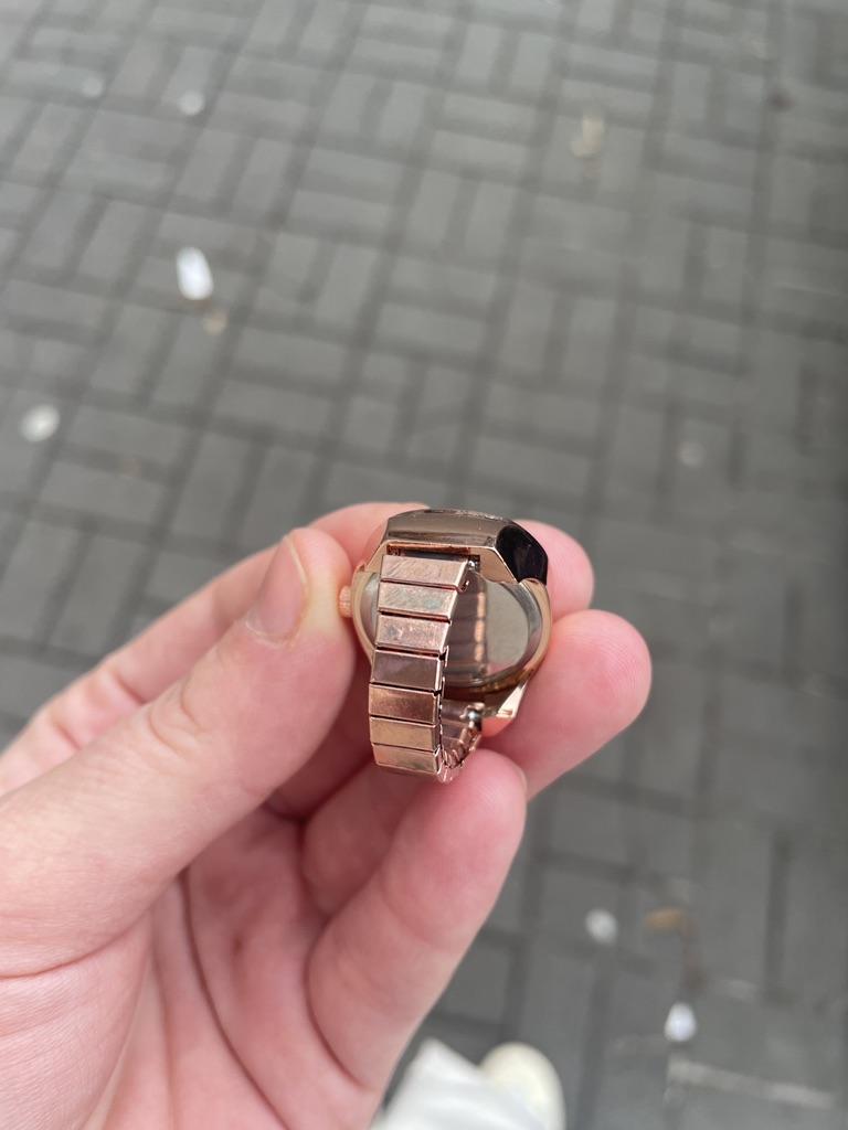 Une vraie montre-bracelet. Une sangle serrée. La bague elle-même est assez lourde. Cela fonctionne correctement, ça a l'air bien. Aucune plainte.
