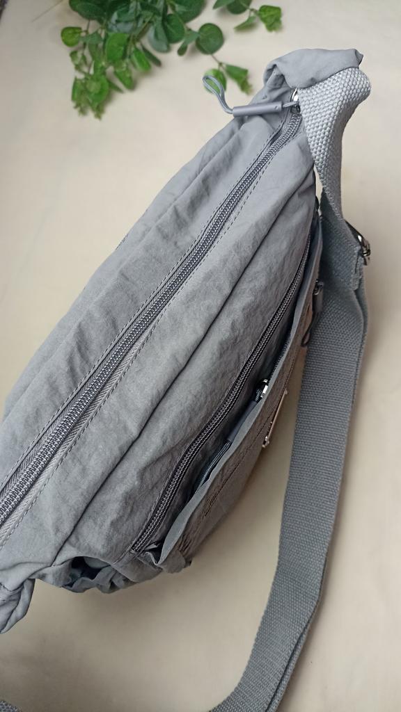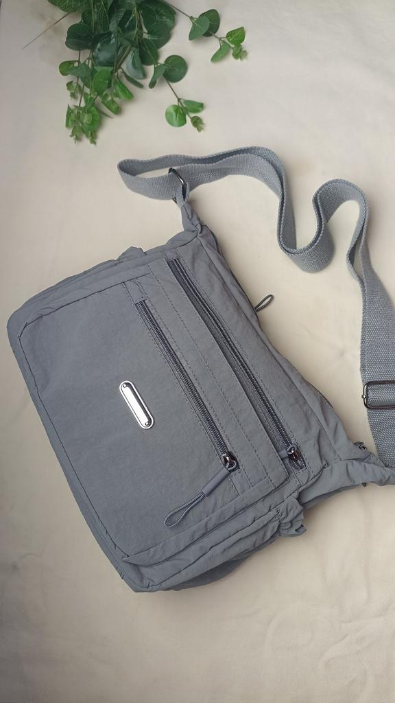 Women's bag sewn from durable fabric. Sizes: 25 x 13 x 20 cm. Comfortable functionally due to the large number of pockets. Has one main compartment with a zipper. Three zippered compartments on the front. Open-type elasticated pockets on the ends. This model is equipped with a non-removable, long, shoulder strap that, if necessary, is adjustable in length. Lining: Textile. Definitely recommend.👍