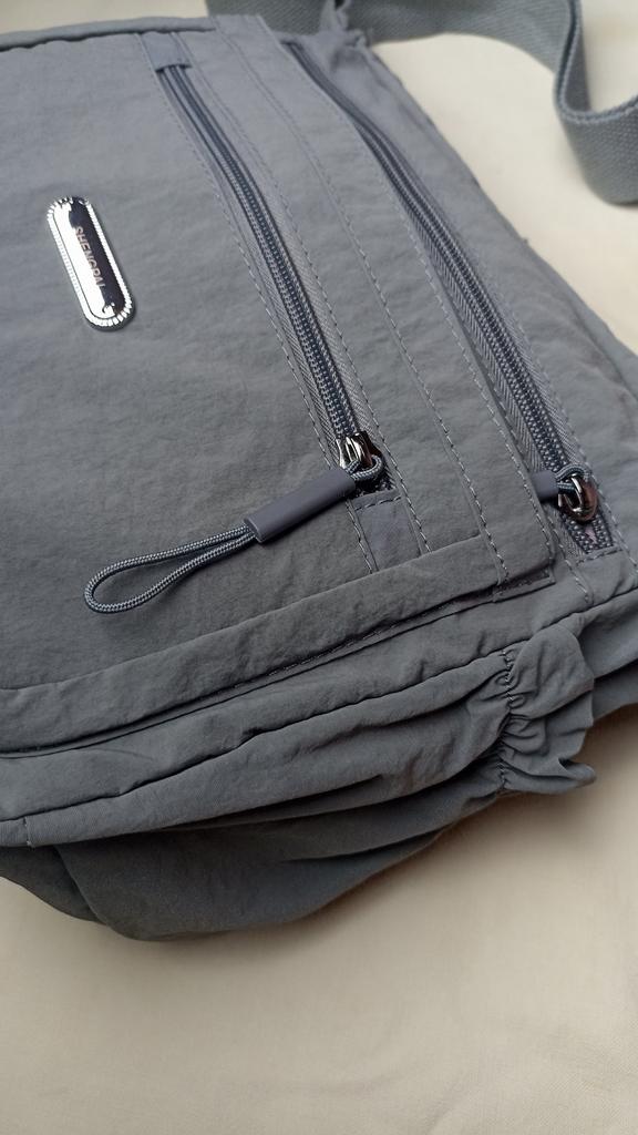 SHOULDER BAG small shoulder bag equipped with a non-removable but adjustable canvas shoulder strap. The bag has 2 internal pockets, one with a zipper and one open pocket (for a smartphone, for example). On the outside, on both sides, there are 5 pockets closable with a zipper and 2 small open pockets gathered with elastic.. Available in various colors . I chose the color black. Material: fabric of good thickness water-repellent and washable ,the bag is lined. The seams are neat, no bad smells. Arrived in Italy in 20 days with tracked shipping. Packaging: cellophane wrap. Recommended purchase 👌