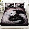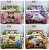3pcs 100% Polyester Cute Cartoon Cat Print Fitted Sheet Set Bedroom Decoration, Purple Floral Starry Sky Pattern Bedding Set