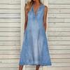 Solid Color Sleeveless V-neck Denim Dress Solid Sleeveless V-neck Dress