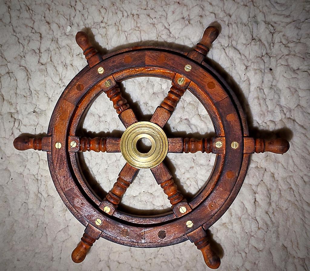 Sei raggi in legno inseriti nell'anello centrale in ottone