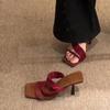 Retro Spice Girl Style~ French Square Head High Heel Slippers Women's Summer Outer Wear Korean Version Wrap-Up Open-toed Stiletto Sandals