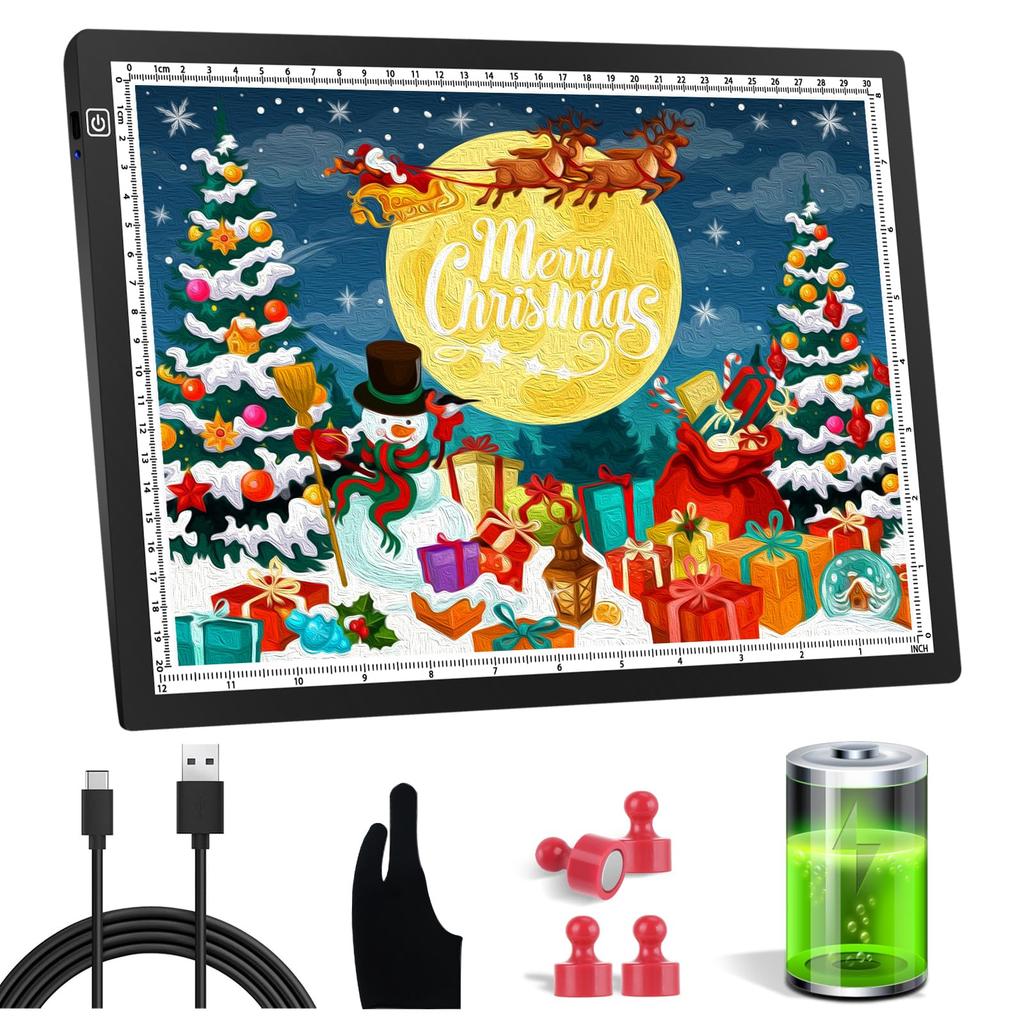 Uniform Lighting & Stepless Dimming: Equipped with multiple LED lights for high brightness. The high-quality, dot-free panel provides full-surface illumination for uniform brightness and reduced flicker, providing a comfortable working environment. Press and hold the button for stepless dimming, and the excellent touch sensitivity allows for stress-free adjustment. It's recommended to adjust the brightness according to the thickness of the tracing paper.