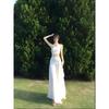 Niche cold white slanted shoulder waist dress women's seaside vacation atmosphere super fairy dress