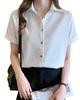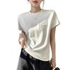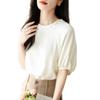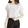 Blouse for Short Sleeve Silky Shiny Crew Summer Different Office Slimming [Septora] Women, T-Shirt, Summer, Shirt, Top, Neck, Loungewear, Elegant,