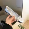 French gentle square head pearl flats women's 2025 new with skirt comfortable soft sole silver single shoes ballet shoes