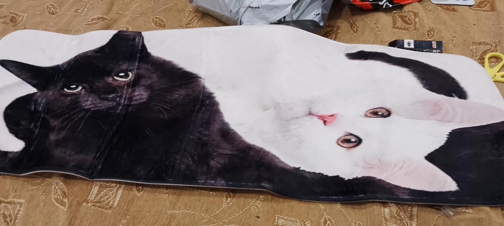 Svart og hvit katt dekorativ gulvmatte teppe stue barnesoverom nattbord sklisikker gulvmatte kjøkken bad
